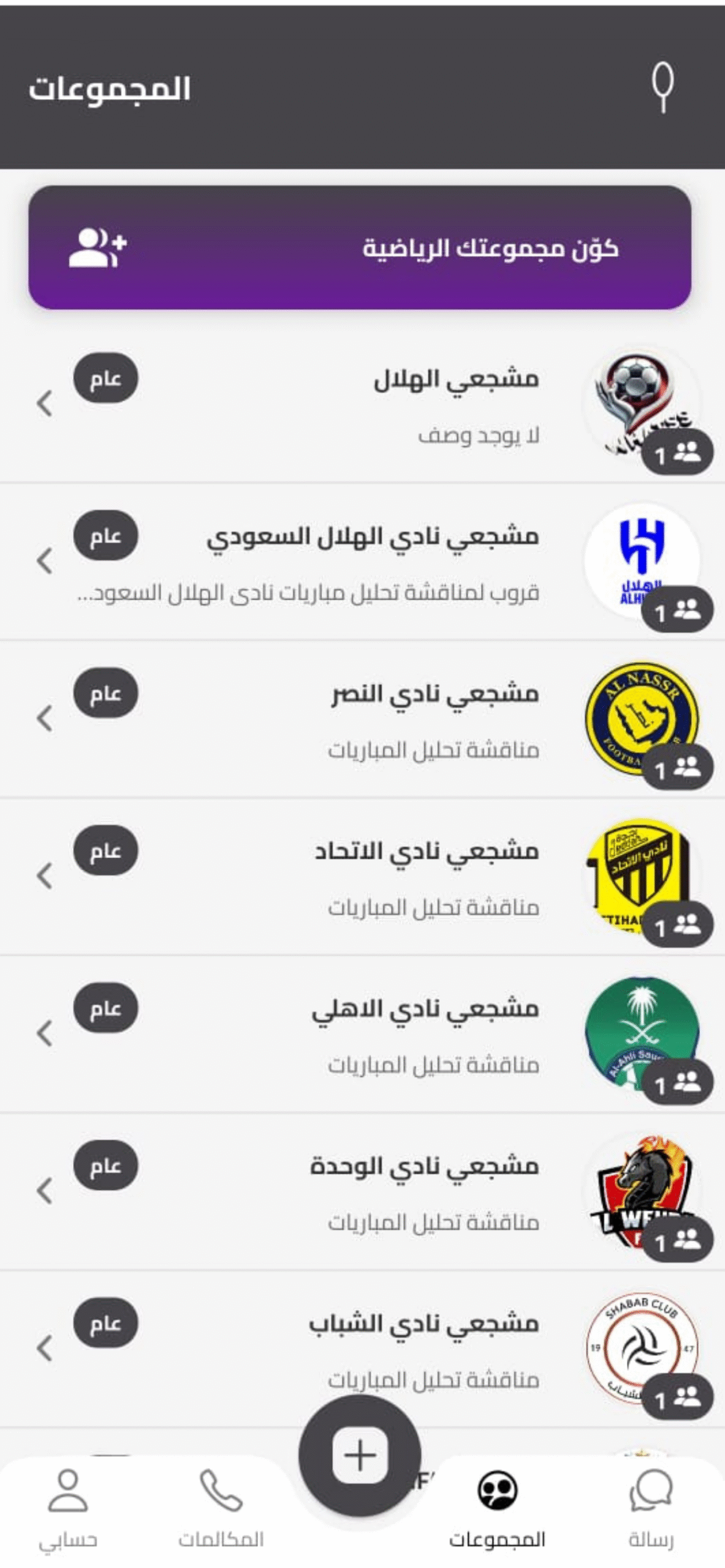 5️⃣ إدارة القروبات الرياضية ⚽